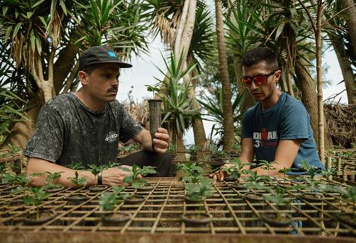 A 1.400 metros de altitud, la finca se beneficia de un microclima ideal para la producción y secado del café, con camas elevadas entre picos que aprovechan la brisa constante. Cultivan unas 20 variedades, destacando Pacamara y Bourbon, e investigan con 70 más en un vivero especializado. Además de enfocarse en la calidad, Diego promueve prácticas sostenibles, como el uso de agua de lluvia, apicultura y empleo permanente, mientras conserva la sombra natural para proteger el ecosistema.