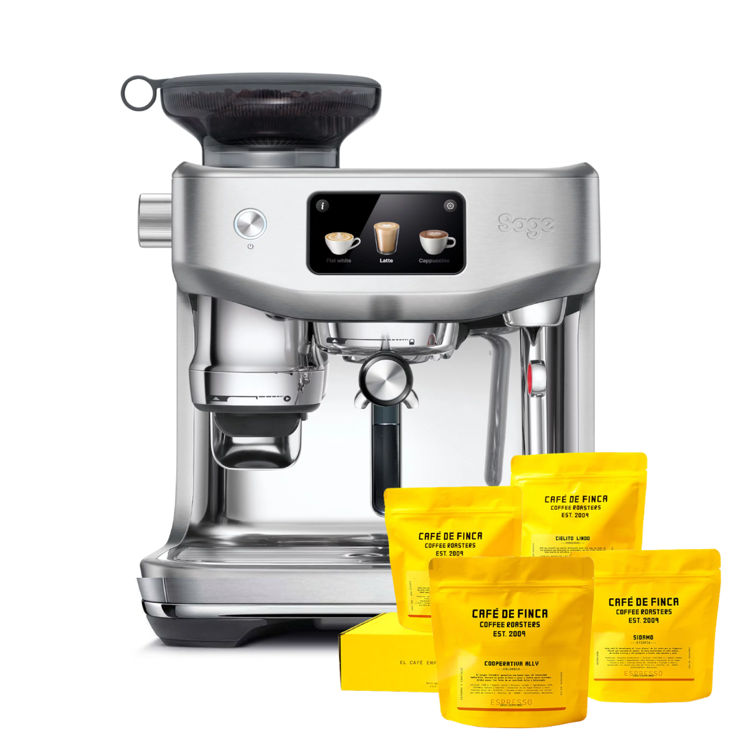 Nuestra Rocket x CAFÉ DE FINCA no solo te garantiza un espresso de calidad, sino que destaca con personalidad y carácter con su diseño en negro y los paneles laterales en nuestro amarillo único. Ideal para extraer lo mejor de tu café de especialidad, esta máquina es para aquellos que entienden que el café se vive tanto como se disfruta.