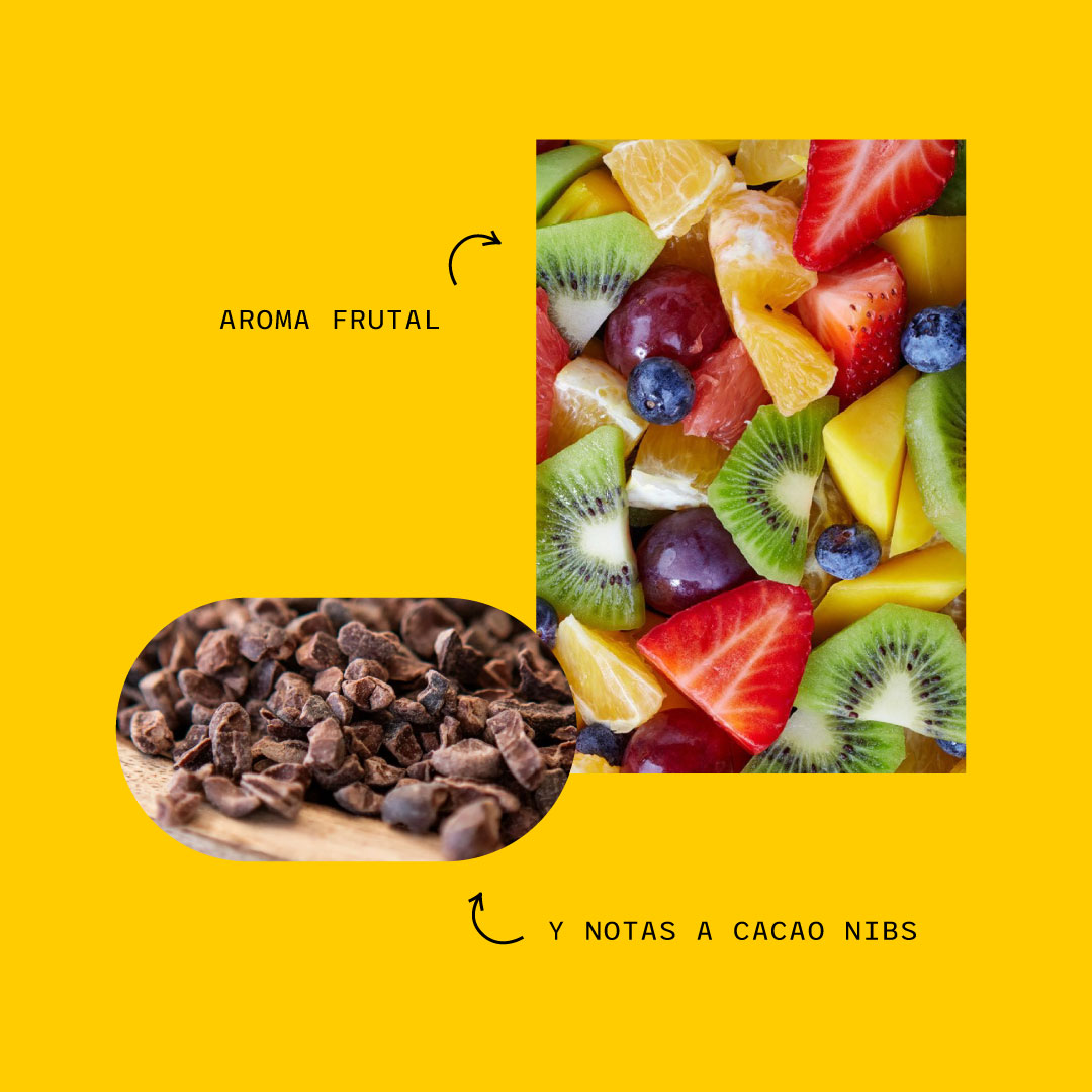 Café con un aroma intenso y frutal que se entrelazan con notas a cacao nibs, creando una fragancia seductora. Su cuerpo avinado aporta una complejidad elegante, mientras que su acidez ofrece una chispa exótica en cada sorbo.